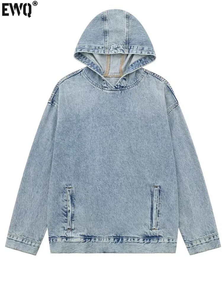 [EWQ] 長袖 秋トレンド レディース フード付き レディース デニム ジャケット ライトブルー 16O05505 ロング オータム 秋物