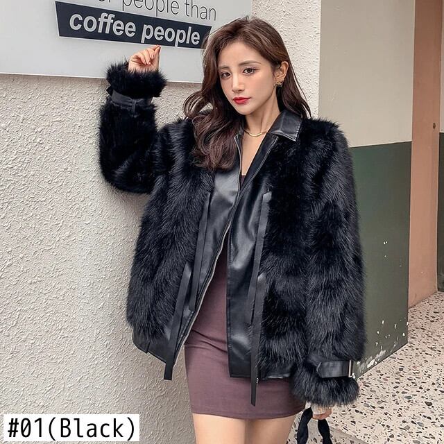 [EWQ] フェイクフォックスファージッパースプライスレザーコート厚みオートバイラペルジャケット秋冬 16U6221 オータム 秋物 ウィンター 冬物