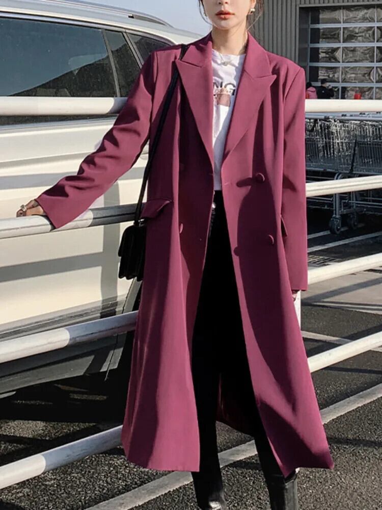 [EWQ] ラペル ダブルブレスト スーツ ウインドブレーカー コート 婦人 ゆったり ロング アウター ジャケット 春秋 16U6250 スプリング 春物 オータム 秋物