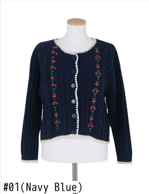 [EWQ] 花刺繍甘いカーディガンコート長袖シングルブレスト弾性セータージャケット秋冬 16U4367 ロング エラスティック 伸縮 大人ガーリー スウィート キュート カジュアル オータム 秋物 ウィンター 冬物 フラワーデザイン