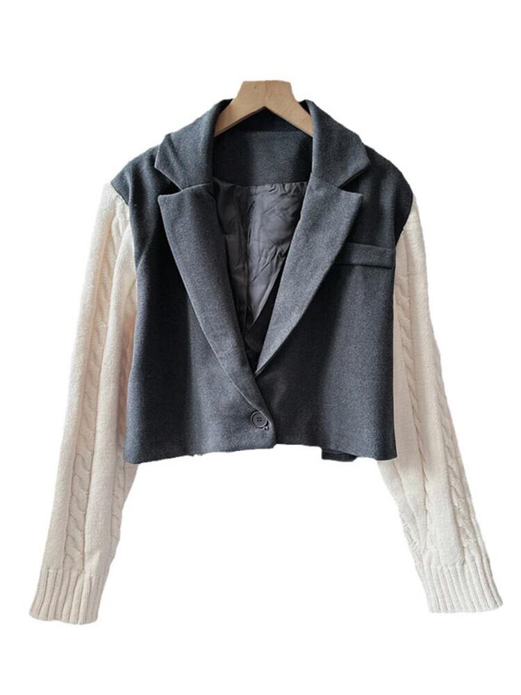 [EWQ] 長袖セーターパッチワークブレザーコートシングルブレストルーズショートスーツジャケット秋冬 16U4377 ロング オータム 秋物 ウィンター 冬物