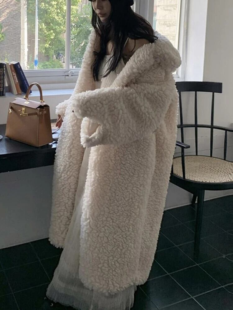 [EWQ] グレー ホワイト 長袖 ラペル ラムウール ゆったり オーバーサイズ レディース ジャケット アウター 秋冬 16U6165 ロング オータム 秋物 ウィンター 冬物