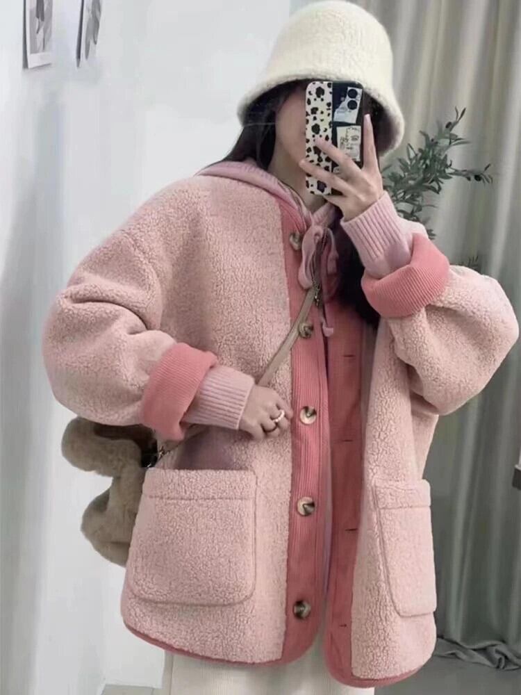 【EWQ】長袖 パッチワーク アウター シック 薄手 フェイクラムウール コート 初秋 冬 大きいサイズ ジャケット トップス U2251 ロング オータム 秋物 ウィンター 冬物