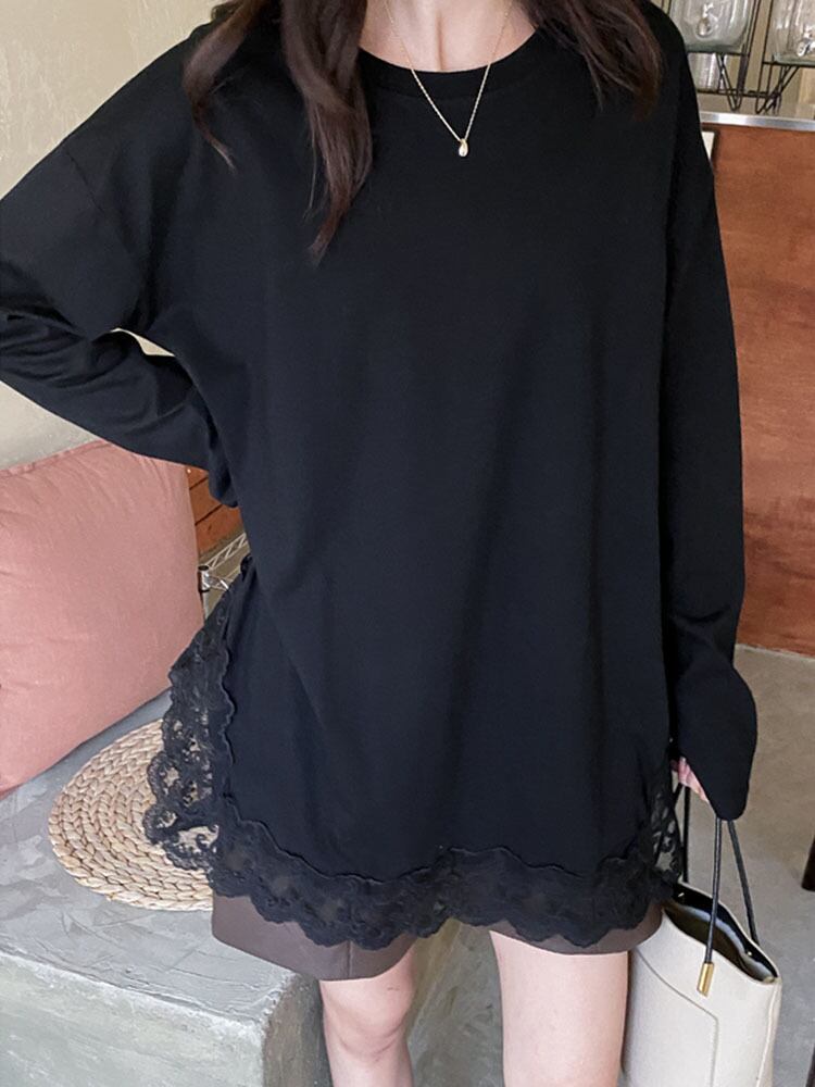 [EWQ] シック O ネック 長袖 Tシャツ 下敷き ホワイト ブラック レディース 春 秋 大きいサイズ Tシャツ トップス U6081 ロング スプリング 春物 オータム 秋物 Oネック