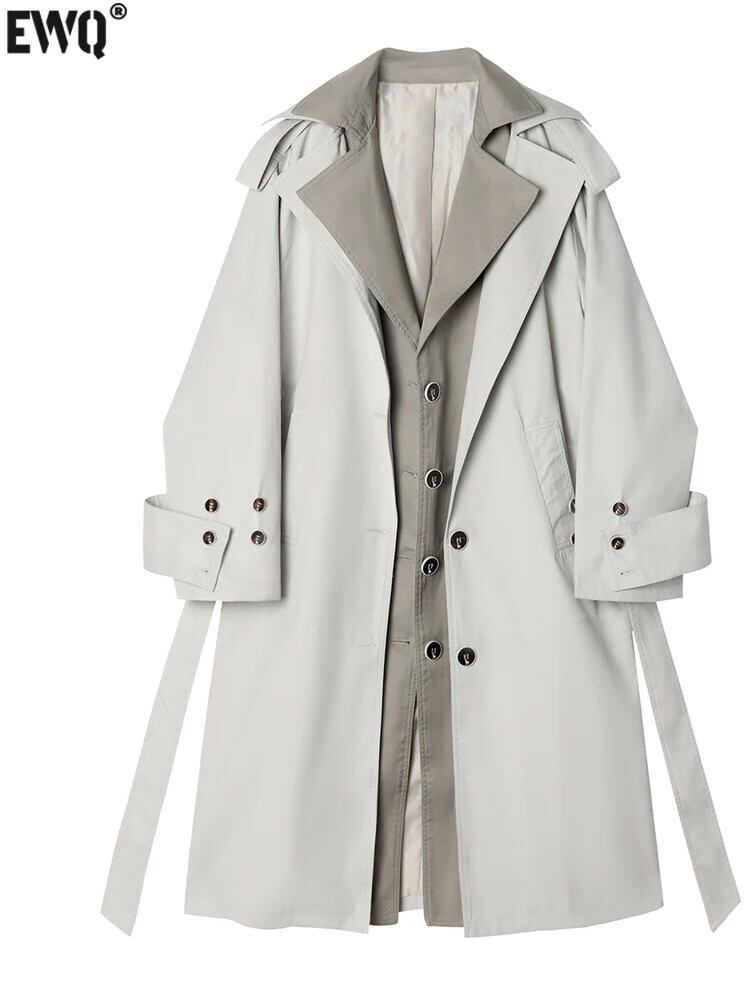 [EWQ] サファリスタイルシンプルノッチカラーパッチワークダブルブレストベルトレディーストレンチコート春トレンドウインドブレーカー スプリング 春物 ハーネス