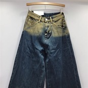 [EWQ] グラデーションデニムパンツウエストポケットストリートワイドレッグジーンズ秋冬ズボン Y2k U55 オータム 秋物 ウィンター 冬物 ワイドパンツ