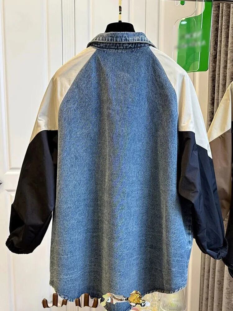 [EWQ] ポロ襟長袖コントラストカラーデニム春秋オーバーサイズコートジャケット生き抜くトップ 16U5755 ロング スプリング 春物 オータム 秋物