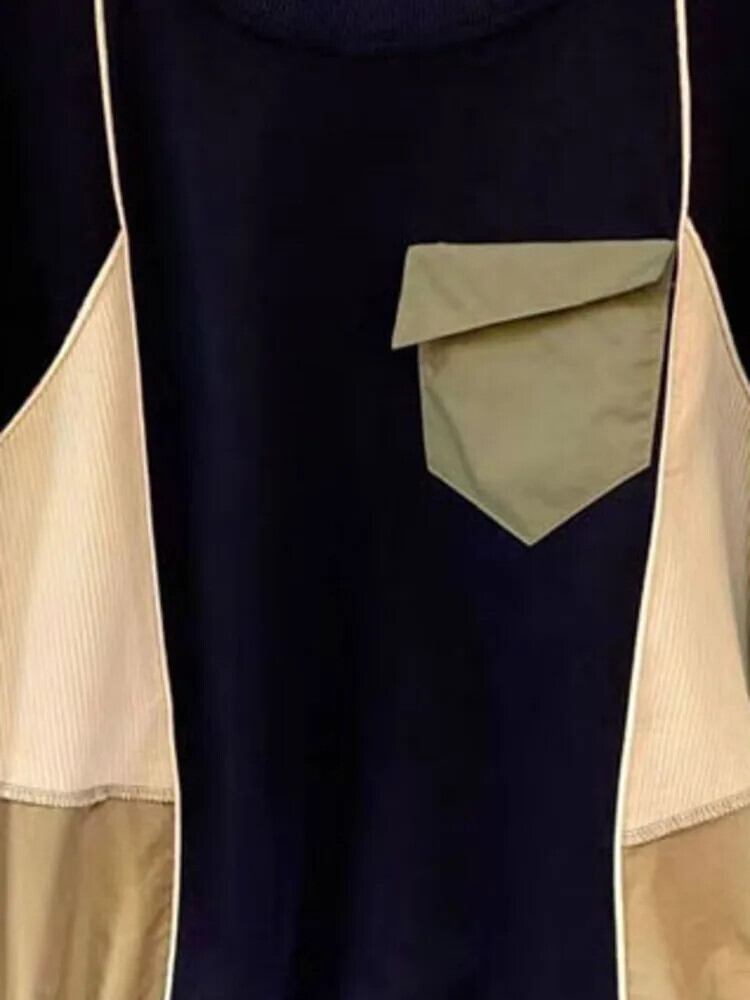 [EWQ] O ネックコントラスト色不規則巾着スリム長袖プルオーバートレーナールーズトップ秋春 U6009 ロング スプリング 春物 オータム 秋物 Oネック
