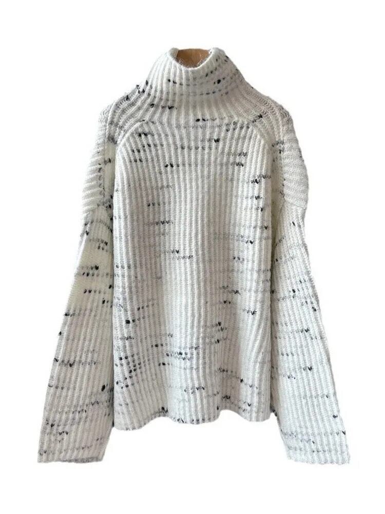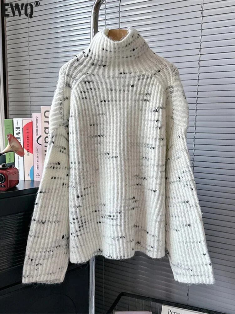 [EWQ] タートルネックストライプベージュ厚く暖かい美しい長袖プルオーバーニットセーター秋冬 6U6005 ロング オータム 秋物 ウィンター 冬物