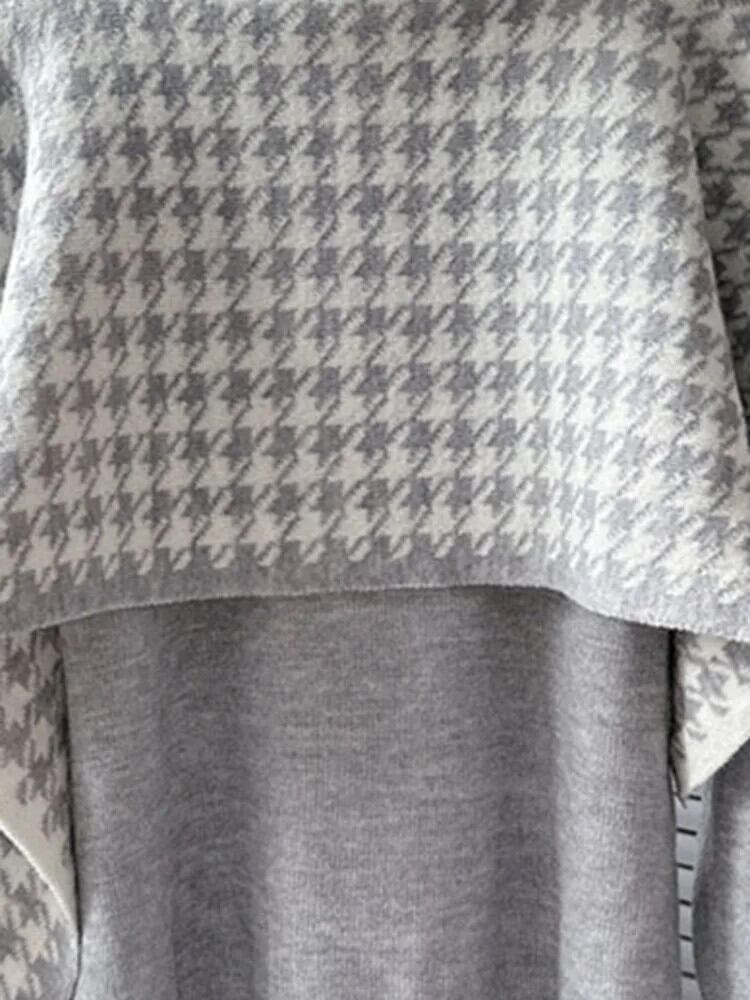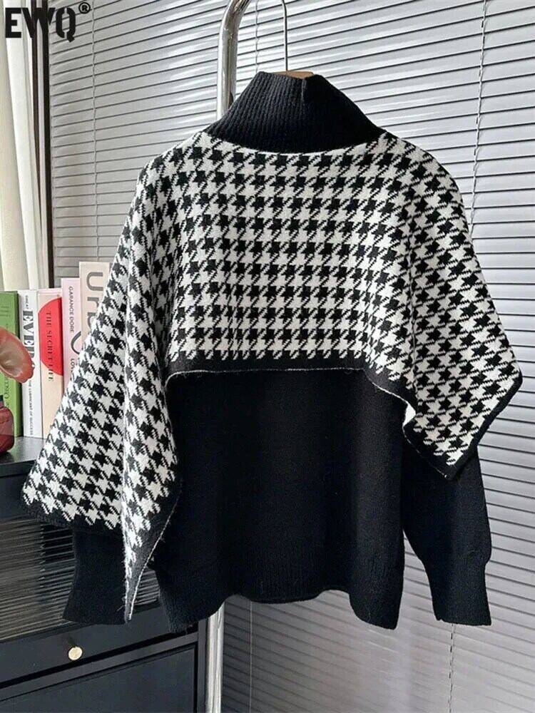[EWQ] オーバーサイズニットベーシックプルオーバー美しいトップスニットジャンパーネックチェック秋冬 16U5786 オータム 秋物 ウィンター 冬物