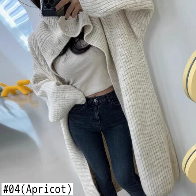 [EWQ] タートルネックバックル緩いオーバーサイズ厚く暖かいロングニットカーディガンセーターコートアウター秋冬 6U6308 オータム 秋物 ウィンター 冬物