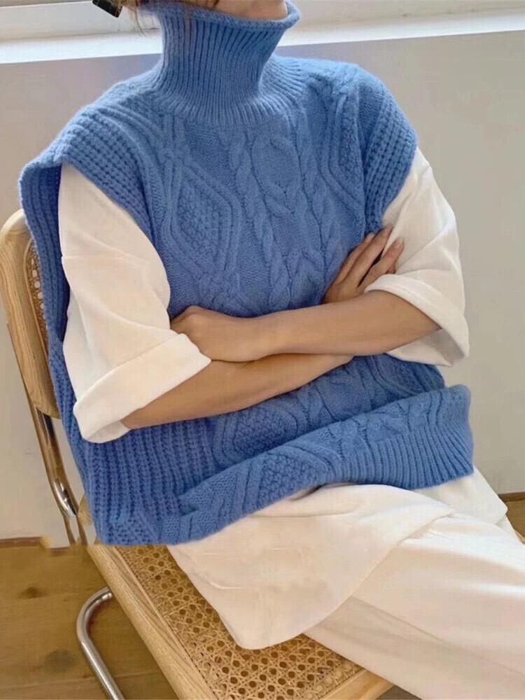 [EWQ] タートルネックニットベストアプリコットノースリーブ弾性セータープルオーバーニットタンクトップ秋冬 16U5354 エラスティック 伸縮 オータム 秋物 ウィンター 冬物