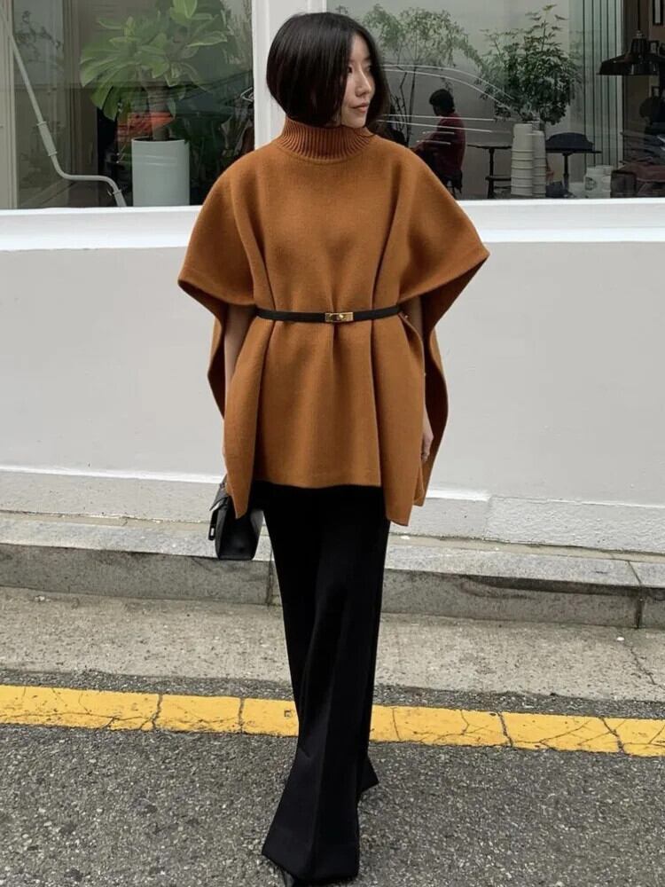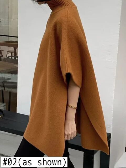 [EWQ] 秋冬ネックルーズ半袖マントニットセーター特大タンクトップコーヒーショール U5709 ショート ハーフスリーブ オータム 秋物 ウィンター 冬物
