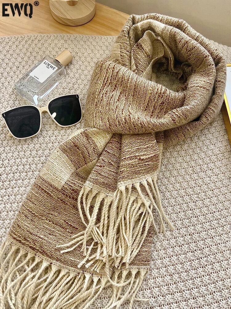 [EWQ] スカーフチェック柄ニットテルショール多用途秋冬潮暖かいネック 16U4872 オータム 秋物 ウィンター 冬物