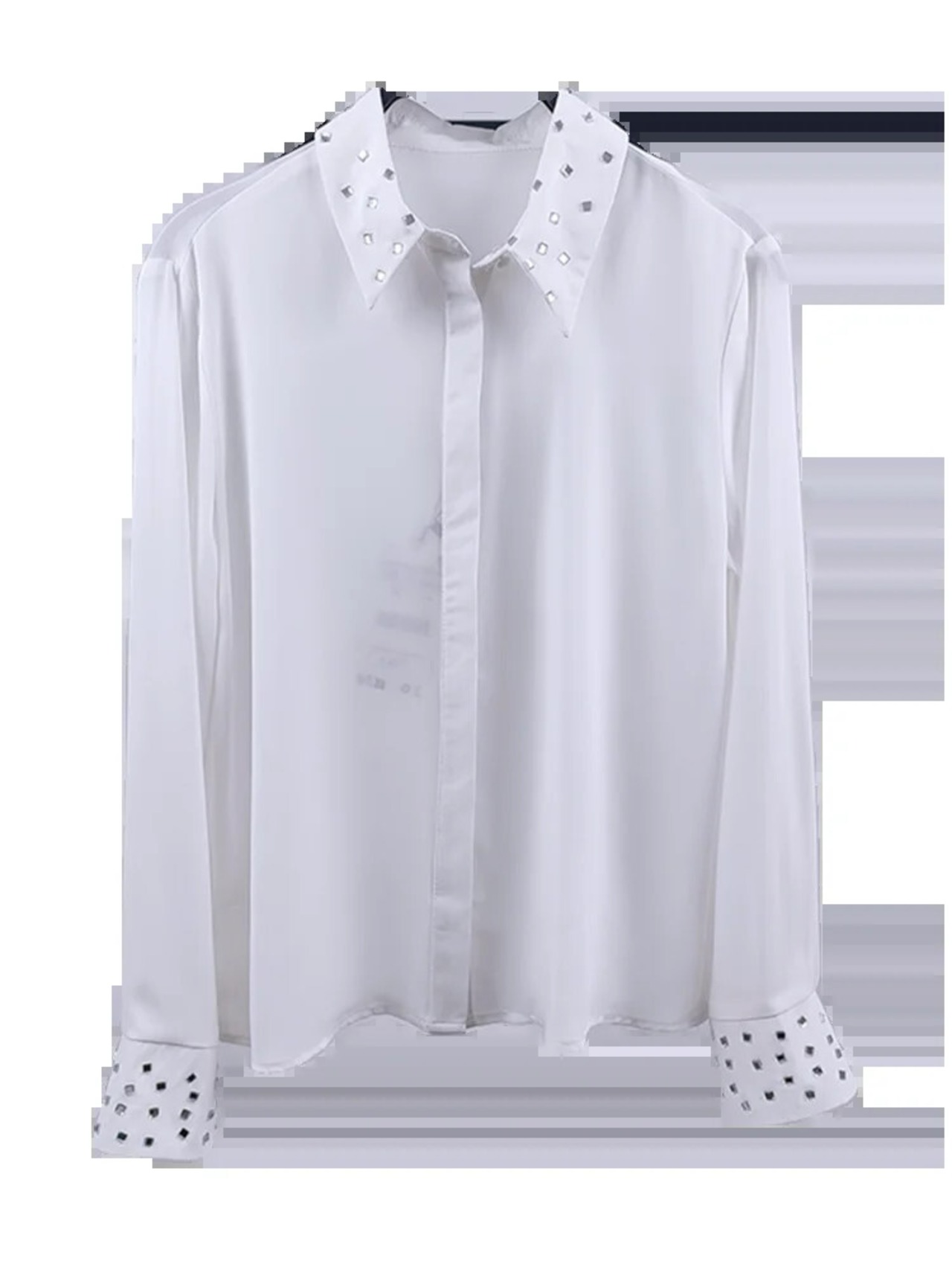 [EWQ] シンプル ラペル 小ダイヤ装飾 ホワイト ピンク レディース 下敷き ブラウス シャツ 秋 春 16U6199 スプリング 春物 オータム 秋物