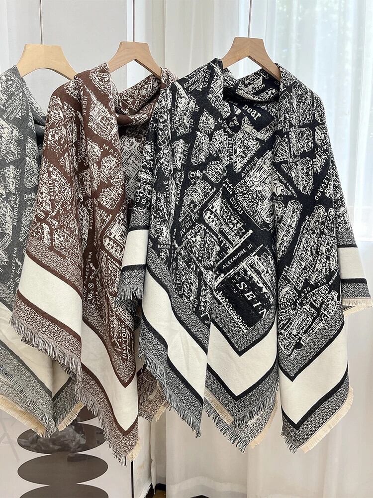 [EWQ] レディース オーバーサイズ ショール コントラスト プリント テル スカーフ ケープ 秋冬 オールマッチ 16U4869 オータム 秋物 ウィンター 冬物