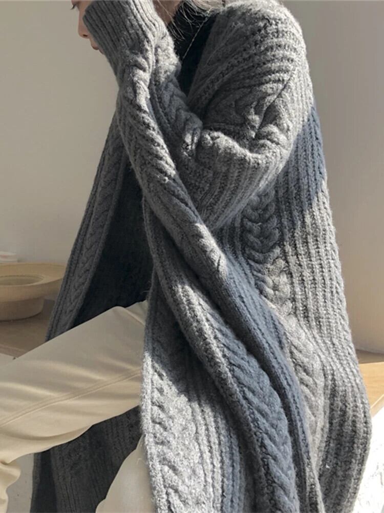 [EWQ] ダークグレー冬カーディガンコートルーズ長袖厚手暖か生き抜くセータージャケット秋 6U5437 ロング オータム 秋物 ウィンター 冬物