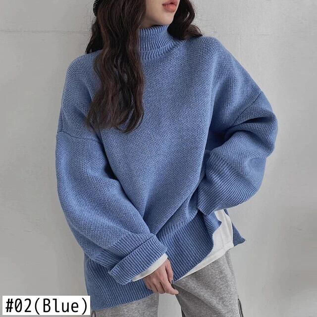 [EWQ] タートルネック厚く長袖特大暖かいニットプルオーバーセーター秋冬ニットジャンパー U5767 ロング オータム 秋物 ウィンター 冬物