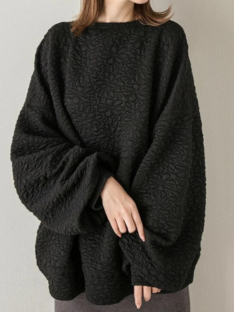 [EWQ] 3D ジャカード白黒スウェットルーズ万能 O ネックプルオーバートップ秋冬 16U5191 ホワイト ブラック シャツ オータム 秋物 ウィンター 冬物 Oネック