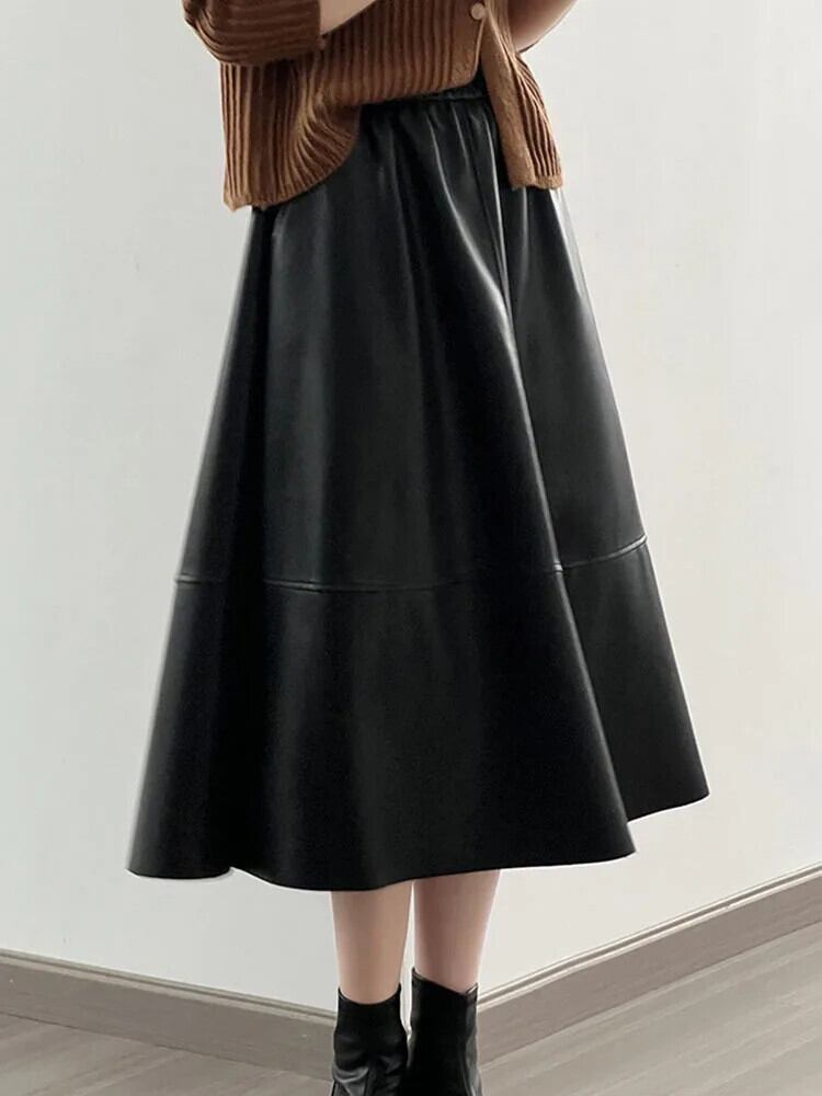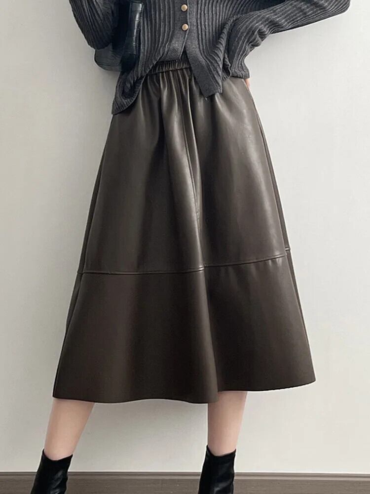 [EWQ] Aライン美しい傘ブラックコーヒーPUレザーウエストレディースボトムスカート秋春16U6034 スプリング 春物 オータム 秋物
