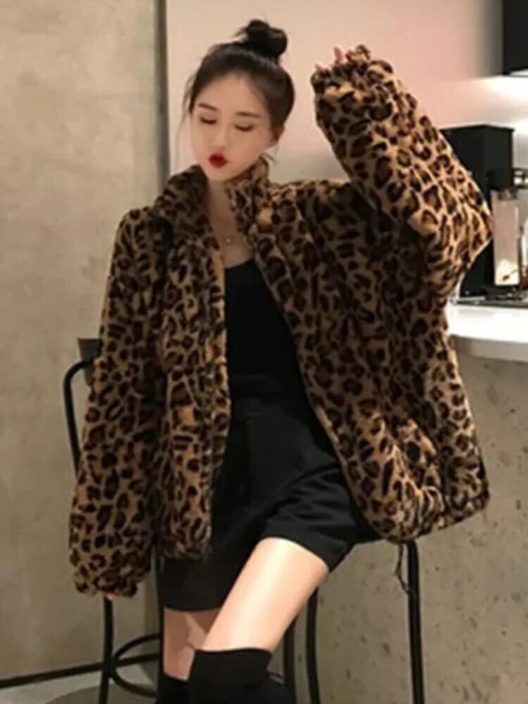 [EWQ] スタンドカラー ジッパー ヒョウ 長袖 厚手 暖かい ゆったり レディース コート ジャケット アウター 秋冬 U6233 ロング オータム 秋物 ウィンター 冬物