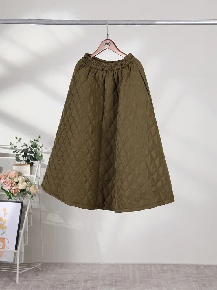 [EWQ] すべて一致アーミーグリーンアプリコットコーヒーウエストチェック柄厚く暖かいスカート秋冬スカート 16U5874 オータム 秋物 ウィンター 冬物