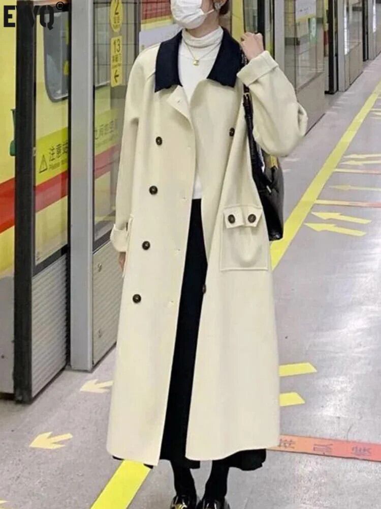 [EWQ] ダブルブレスト レディース ウール コート 厚みある コントラストカラー ラペル ジャケット アウター 秋冬 16U6245 オータム 秋物 ウィンター 冬物