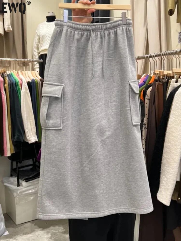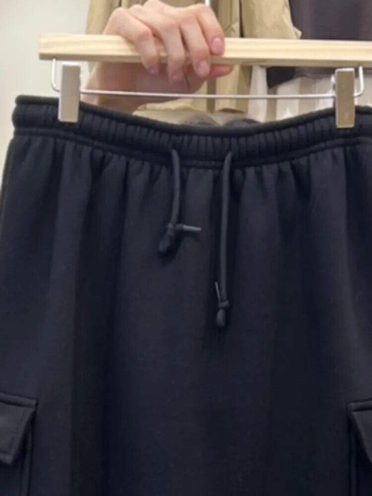 [EWQ] グレー ブラック 巾着 ウエストゴム ポケット スプリット レディース スウェット ハーフスカート 秋 春 16U6173 エラスティック 伸縮 スプリング 春物 オータム 秋物