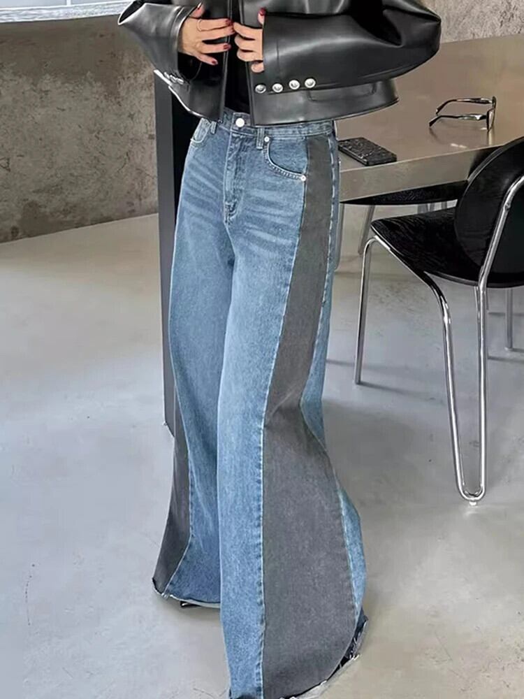 [EWQ] コントラストカラー パッチワーク ウエスト スリム ワイドレッグ ジーンズ ロング デニム パンツ ズボン レディース 秋冬 16U6354 オータム 秋物 ウィンター 冬物 ワイドパンツ
