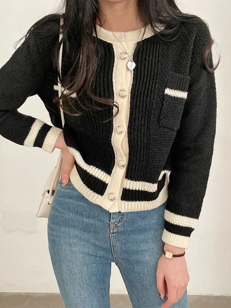 [EWQ] レトロパッチワークシングルブレストカーディガンコートシックボタンセータージャケット秋冬潮 16U3727 オータム 秋物 ウィンター 冬物