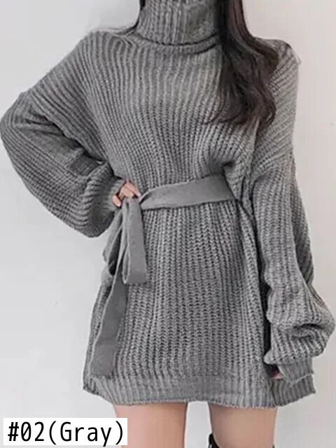 [EWQ] 秋冬気質タートルネックレースアップ蝶ネクタイニットプルオーバーショートレッドセータードレス 16U6409 リボン オータム 秋物 ウィンター 冬物