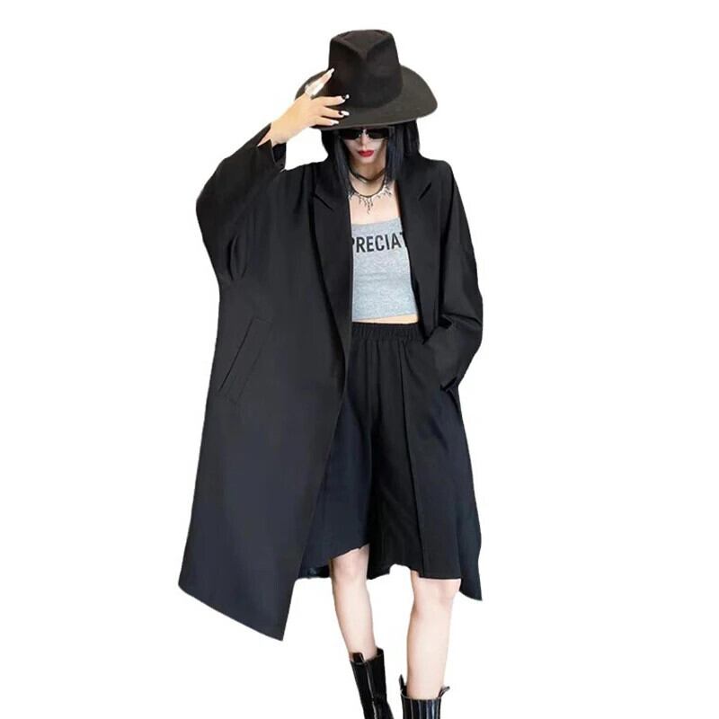 [EWQ] ブラック ラペル シングル ボタン ウインドブレーカー コート レディース 長袖 ジャケット アウター 秋冬 U6247 ロング オータム 秋物 ウィンター 冬物