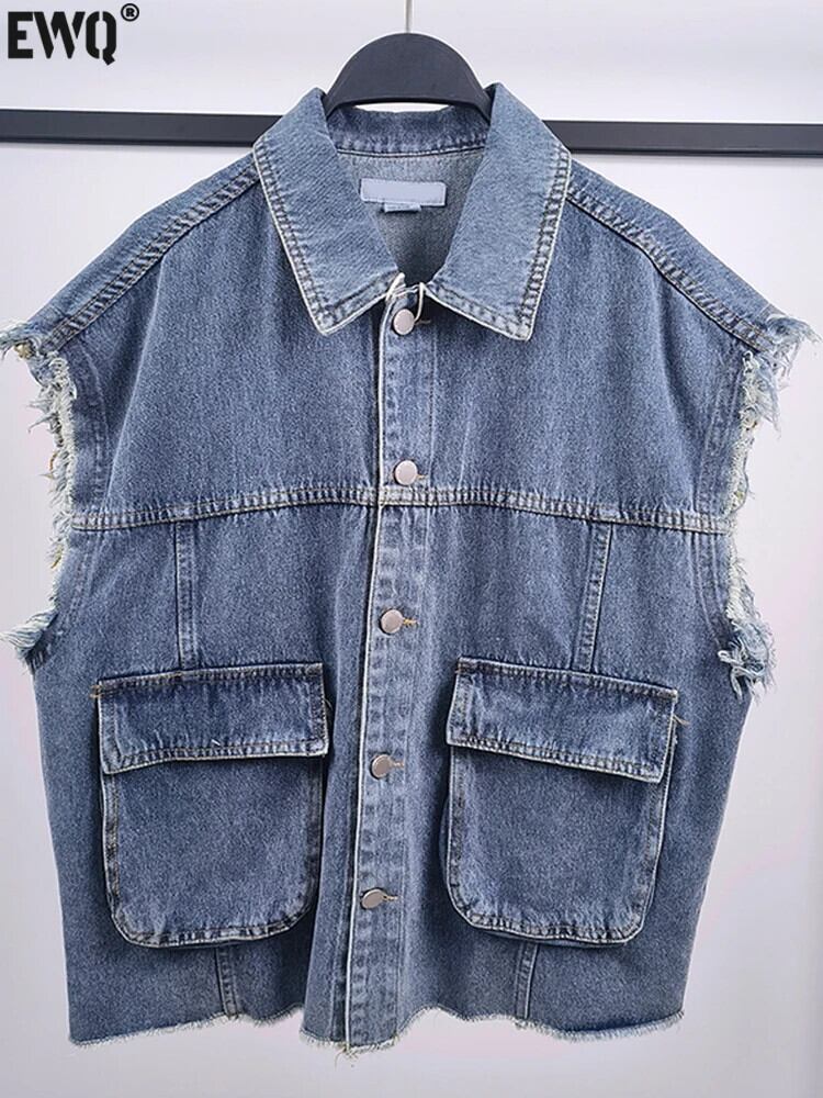 [EWQ] デニムベスト秋冬シングルブレストタンクダブルポケットノースリーブジャケットチョッキ 16U4980 オータム 秋物 ウィンター 冬物