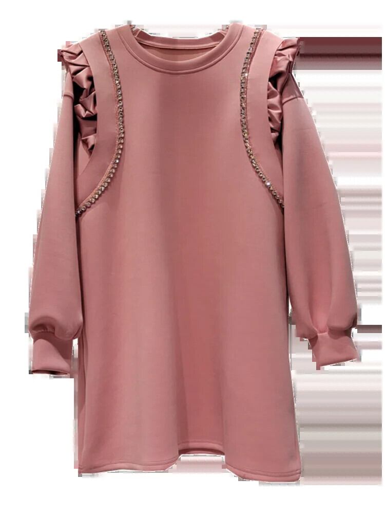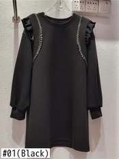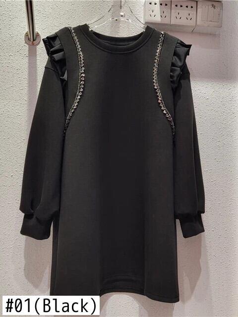 [EWQ] O ネックピンビーズスプライス食用木菌ストレートチューブスウェットシャツドレスマルチカラー秋春 16U6283 スプリング 春物 オータム 秋物 Oネック