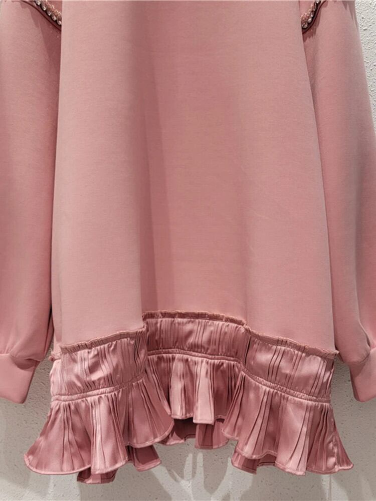 [EWQ] O ネック スプライス オーバーサイズ ダイヤモンド フリル エッジ プルオーバー スウェットシャツ 長袖 トップス レディース 秋冬 16U6282 ロング オータム 秋物 ウィンター 冬物 Oネック