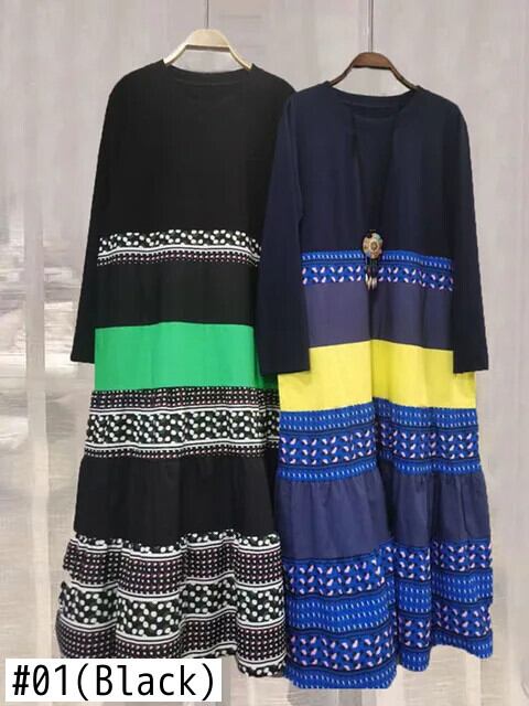 [EWQ] コントラストカラー 長袖 レディース Tシャツ フリルエッジ ミドル丈 ワンピース ゆったり 秋冬 16U6016 ロング オータム 秋物 ウィンター 冬物