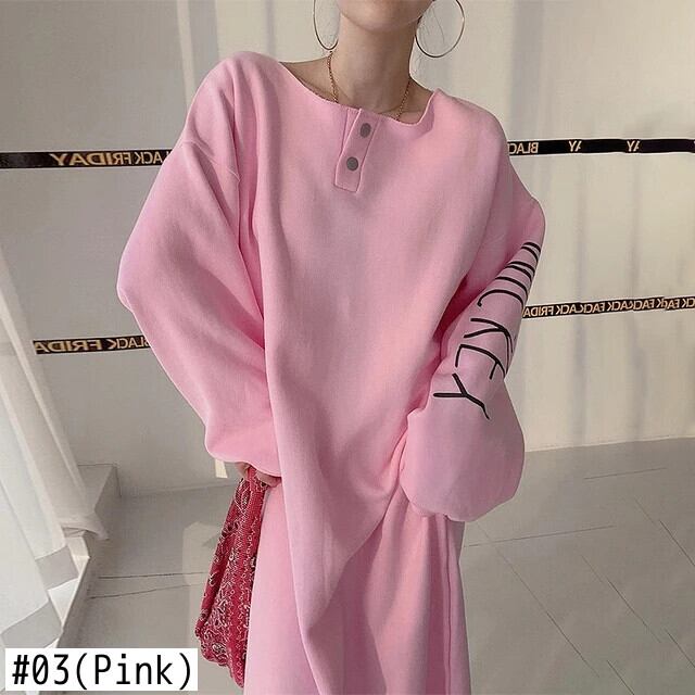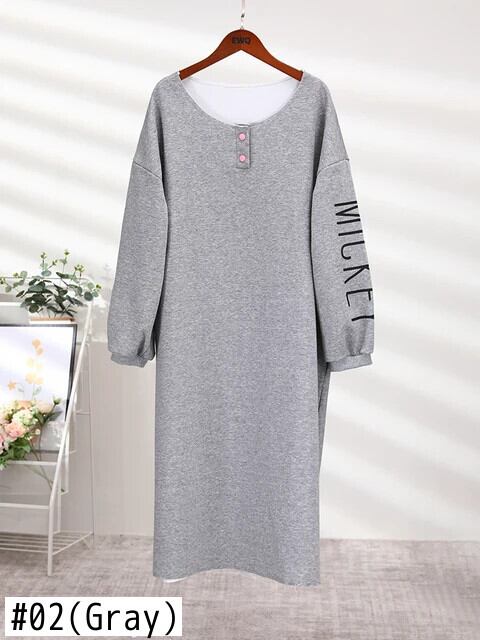 [EWQ] O ネックレタープリントスウェットシャツドレスボタンドレス長袖 Vestido 秋冬 6U4932 ロング オータム 秋物 ウィンター 冬物 Oネック