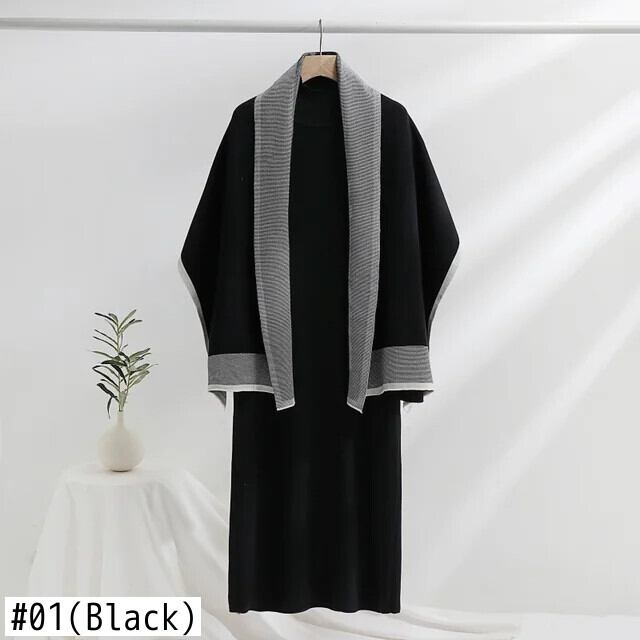 [EWQ] 長さパッチワークショール + 長袖気質スウェットドレス秋潮 Vestidos ロング オータム 秋物