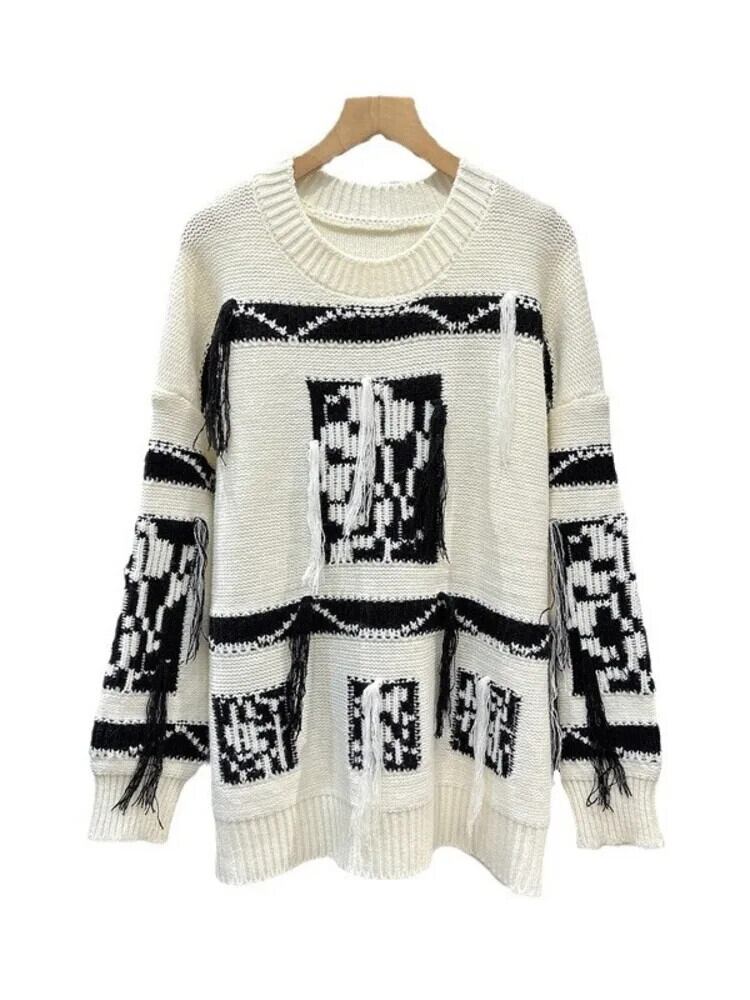[EWQ] Oネック コントラストカラー プルオーバー テルニット セーター レディース ジャンパー 長袖 トップス 秋冬 16U6383 ロング オータム 秋物 ウィンター 冬物