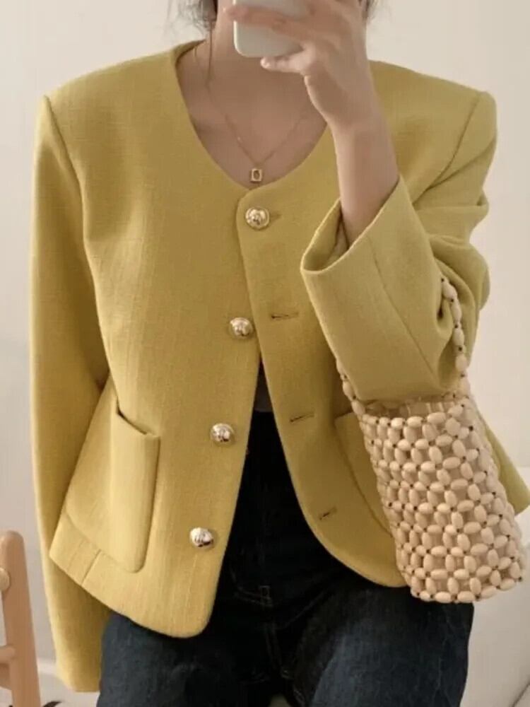 [EWQ] シックシングルブレスト ツイード ジャケット レディース 長袖 ダブル ポケット ジャケット コート 秋冬 16U4171 ロング オータム 秋物 ウィンター 冬物