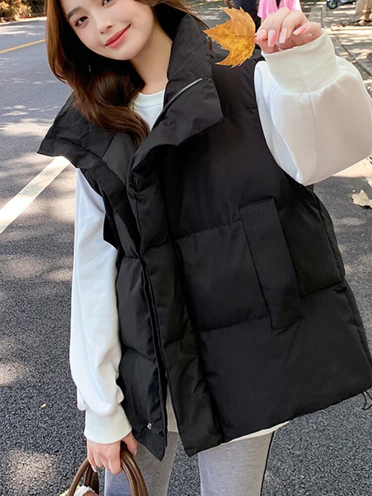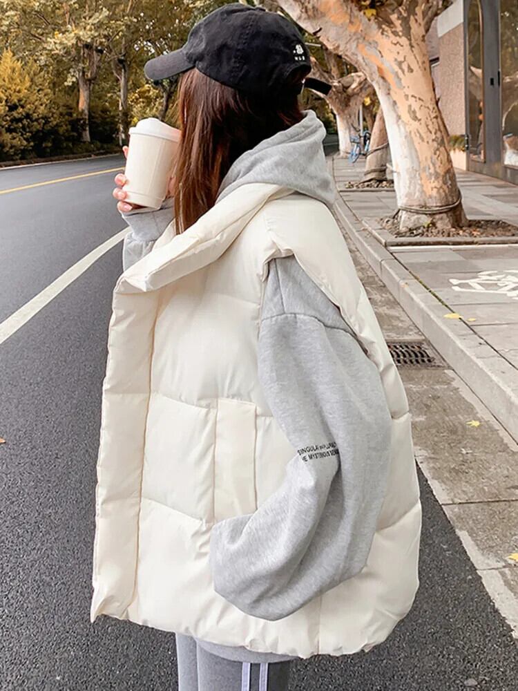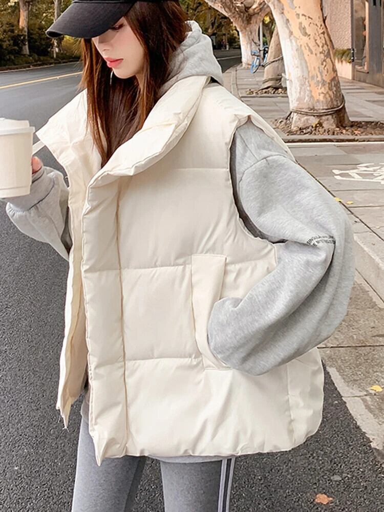 [EWQ] ブレッドダウンコットンベストバージョンビッグサイズ白ダウンパッド綿チョッキトップ秋冬 6U3666 ホワイト オータム 秋物 ウィンター 冬物