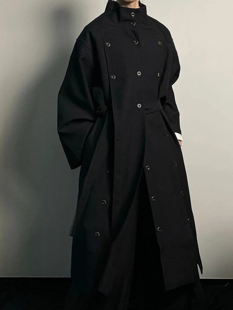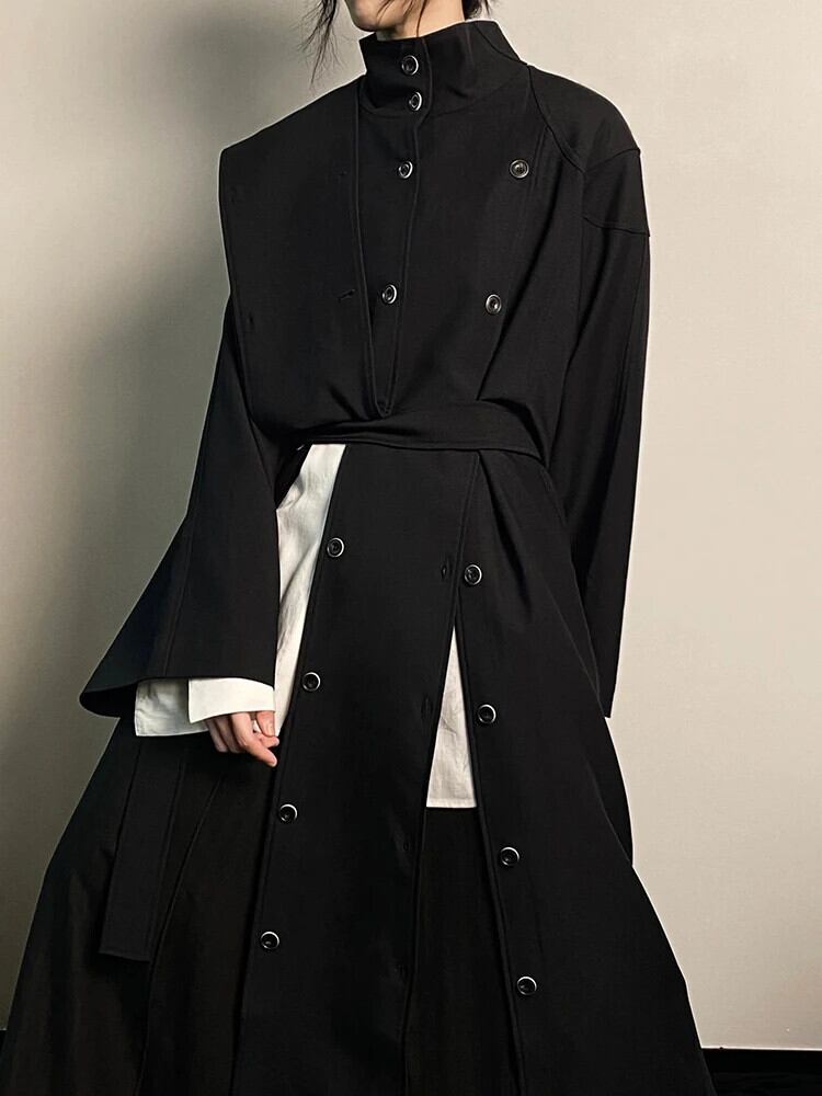 [EWQ] レディース ブラック アウター イレギュラー スタンドカラー 長袖 ウインドブレーカー 秋 トレンチ コート アウト 16U5772k ロング オータム 秋物