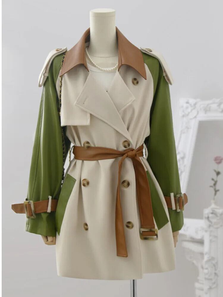 [EWQ] アウター ゆったり レディース ウインドブレーカー グリーン 長袖 レディース トレンチコート 秋 U4219 ロング オータム 秋物