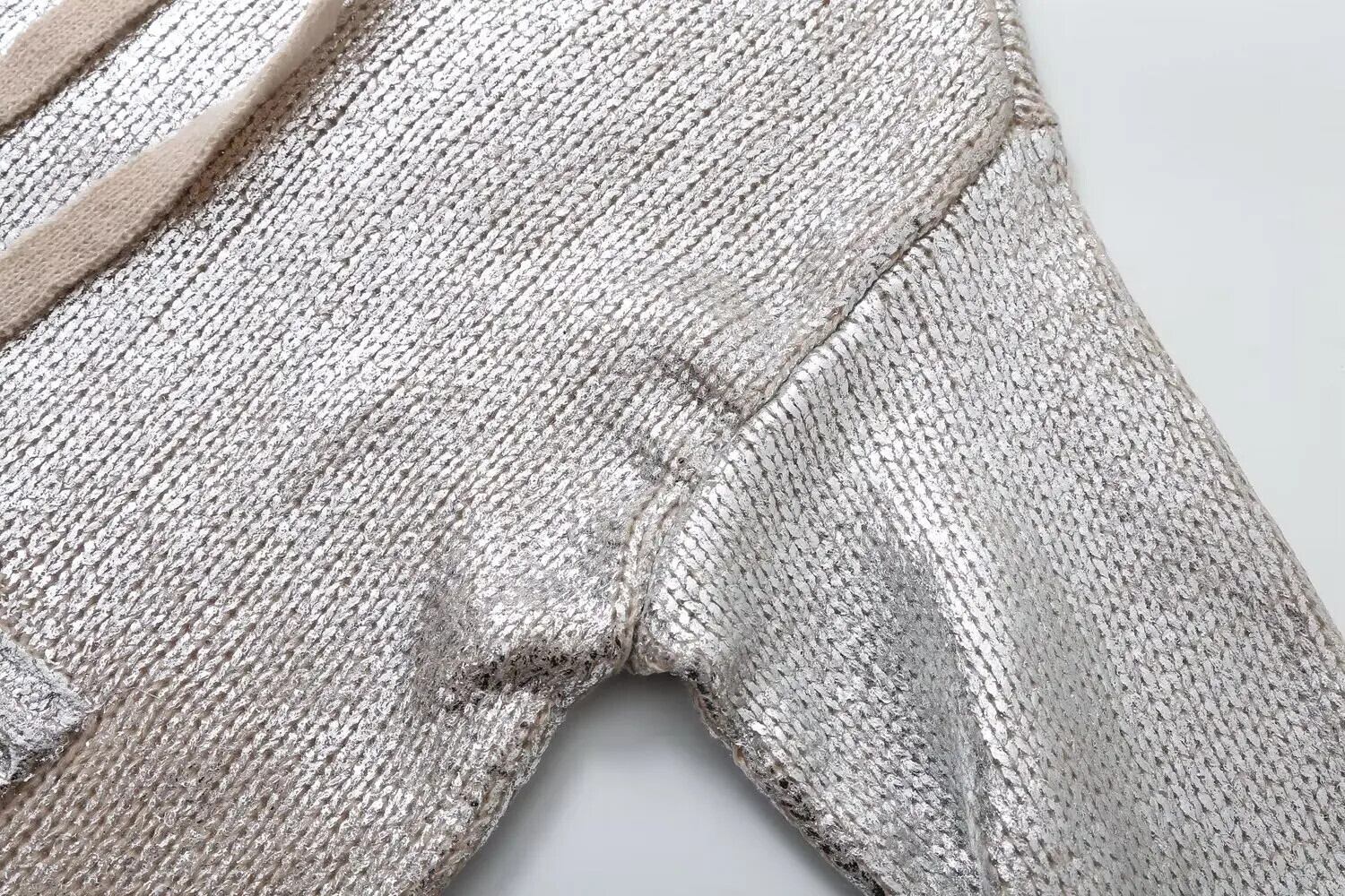 [EWQ] メタルフード付きニット暖かいトレーナー長袖ビッグサイズ美しい冬秋ニットトップ ロング オータム 秋物 ウィンター 冬物