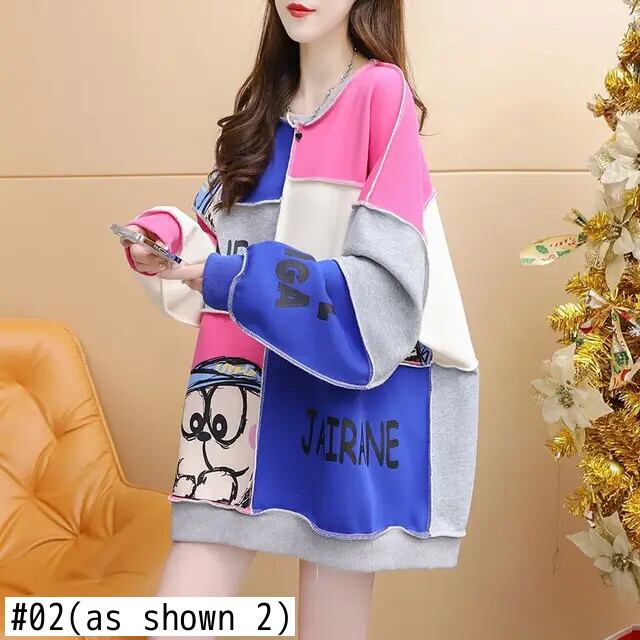 [EWQ] オーバーサイズ スプライス コントラスト カラー O ネック プルオーバー スウェットシャツ レディース 長袖 トップス 秋冬 16U6436 ロング オータム 秋物 ウィンター 冬物 Oネック