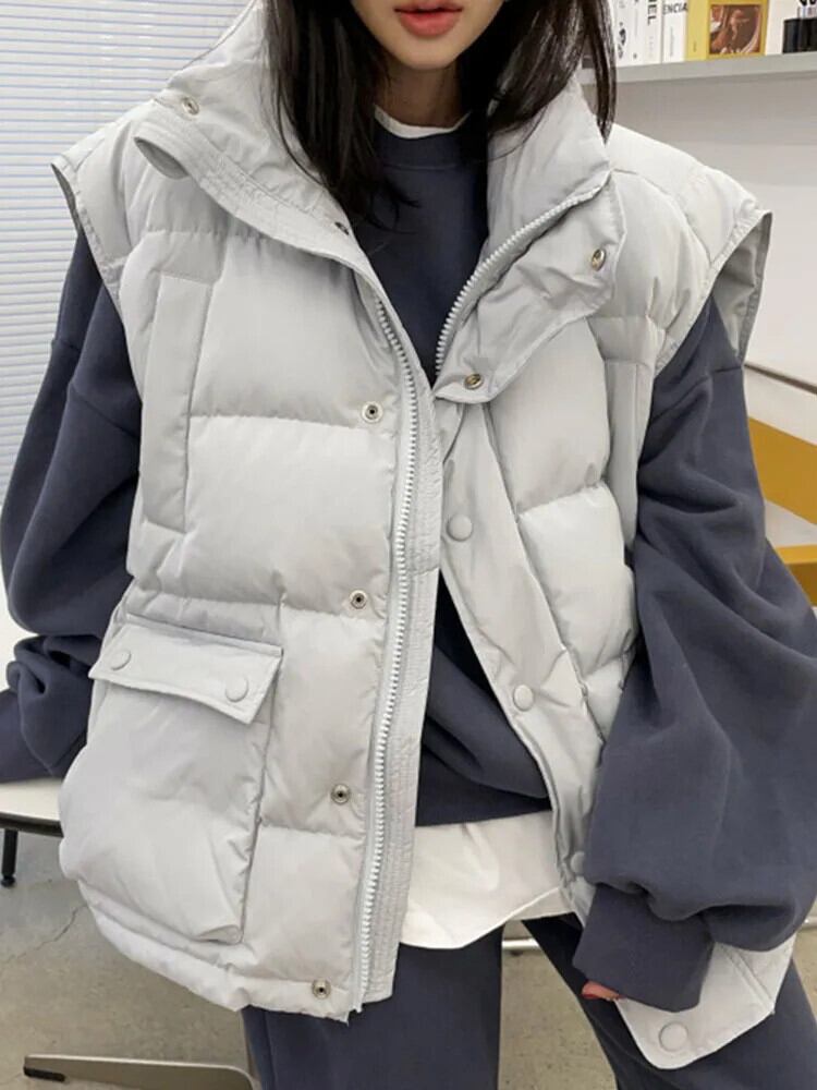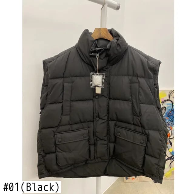 [EWQ] ブラック グレー ホワイト カーキ ポケット ジッパー シングルブレスト 厚手 暖かい ベスト ノースリーブ コート トップス 秋冬 16U5884 オータム 秋物 ウィンター 冬物