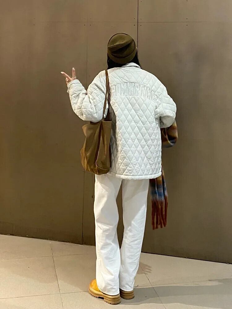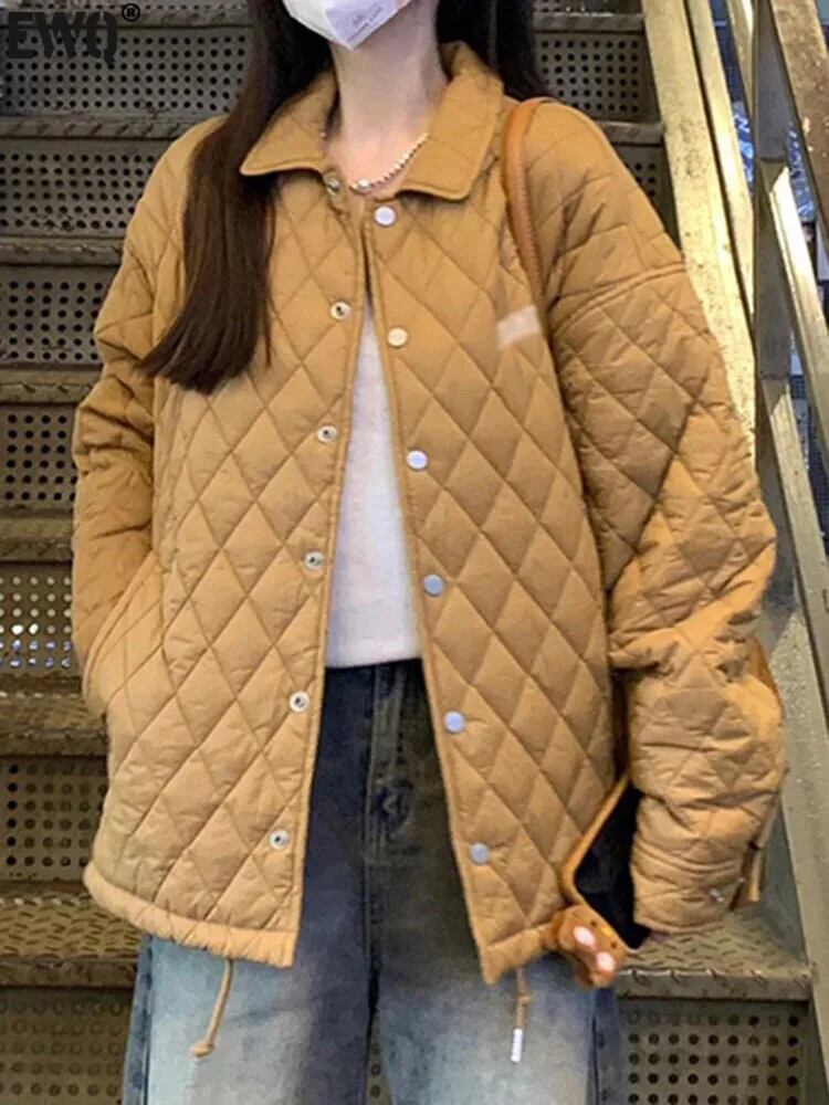 [EWQ] オールマッチラペル シングルブレスト キルティング 刺繍 中綿コート レディース ゆったり ジャケット 秋冬 6U6725 レッド コットン オータム 秋物 ウィンター 冬物