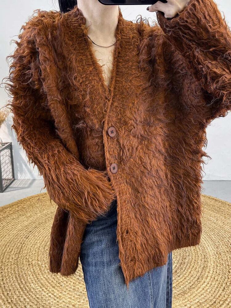 [EWQ] テディカーリーぬいぐるみ V ネックシングルブレスト厚手暖かいニットカーディガンセーターコート婦人秋冬 U6461 オータム 秋物 ウィンター 冬物 Vネック