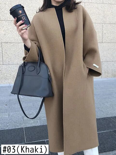 【EWQ】シンプル マルチカラー ブラウン ベージュ ブラック ウール ダブルフェイス カシミヤ コート オーバーコート アウター 秋冬 16U5541 オータム 秋物 ウィンター 冬物