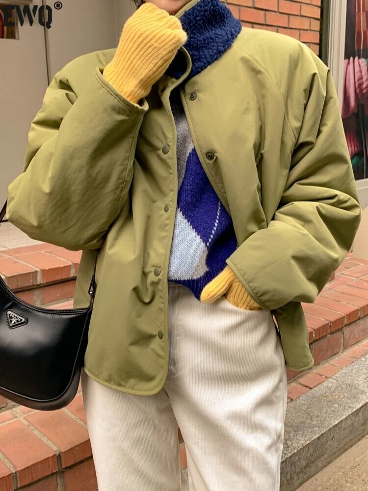 [EWQ] リバーシブルラペルシングルブレストオールマッチ厚くて暖かいラムウールコートジャケット秋冬 U6501 オータム 秋物 ウィンター 冬物